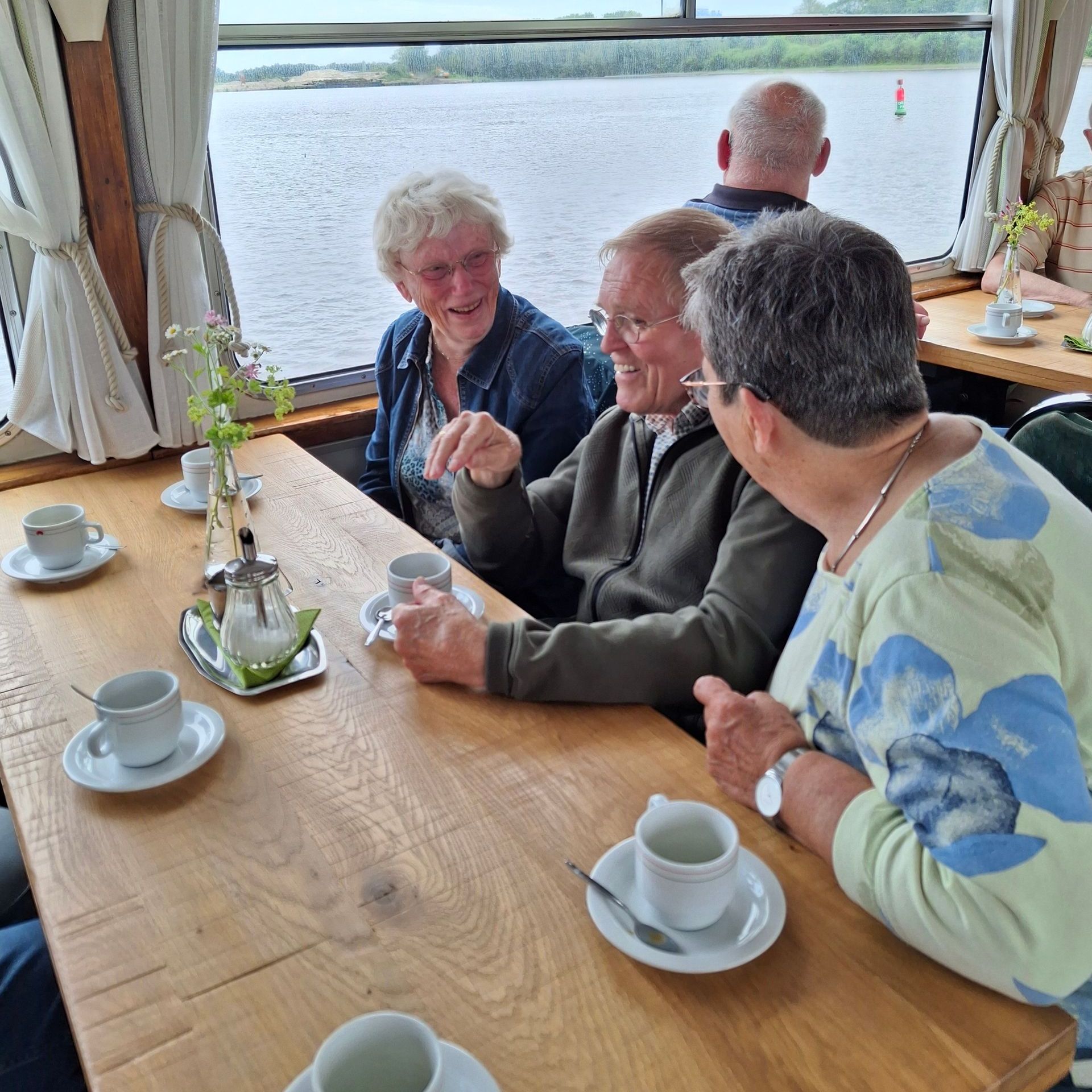 Deze keer met 59 opvarenden van onze drie Odensehuizen: Ureterp, Beetsterzwaag en Drachten. De zon liet een beetje op zich wachten en de wind was frisjes. Dat mocht de pret echter niet drukken. Prachtige uitzichten, gezelligheid, een versnapering en een heerlijke lunch zijn een goed recept voor een prachtig uitje!